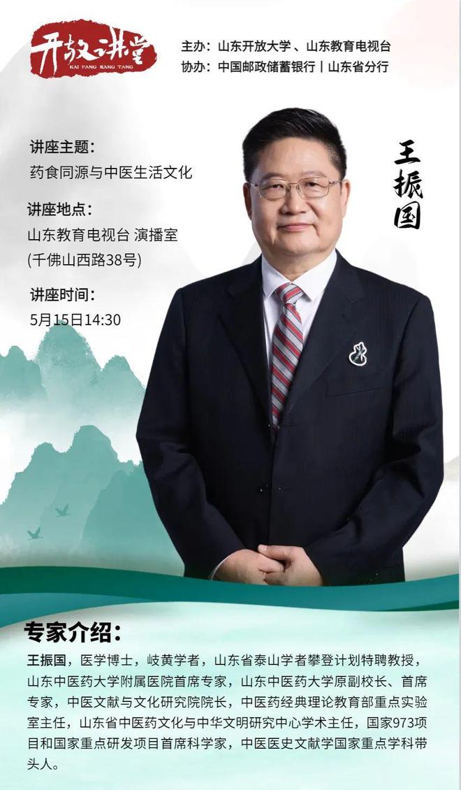 在此次讲座中,王振国教授会将晦涩的中医理论,融入到生动有趣的生活实例里。从常见疾病的食疗调理,到四季养生的饮食搭配,为你全方位解锁中医生活文化的奥秘。