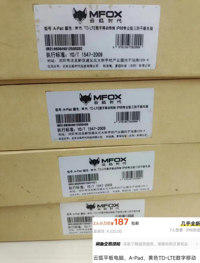 而今天,我在小黄鱼发现了大量云狐三防平板的身影,全套盒说全,一看就是库存货。这牌子我可太有印象了,因为参加过它的媒体沟通会,那时候我还在北漂,云狐初代平板叫J-Pad,末代平板叫A-Pad。