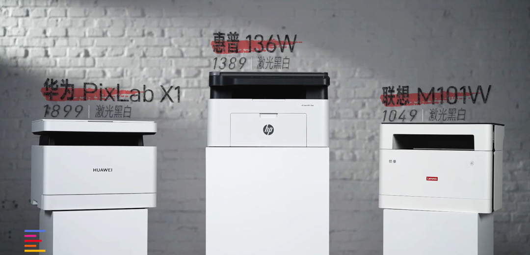 为了更贵的激光打印机会有哪些优势,我们又添加了3款1500元左右的黑白激光打印机作为对照组(惠普(HP)136w、联想 M101w、华为PixLab X1)。