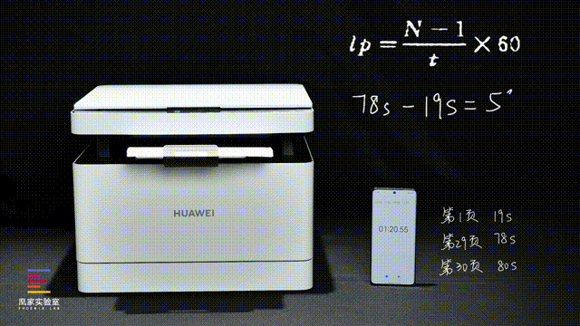 华为打印机的首页打印时间是19秒,打印出第29张的时间为78秒,第30张的时间为80秒,按照国标公式「第N张打印时间减去第一张打印时间,不小于且尽可能的接近60秒」的准则,华为打印机的t就不能取78-19的59秒,而应该是80-19=61秒,相应的N也就该是30。