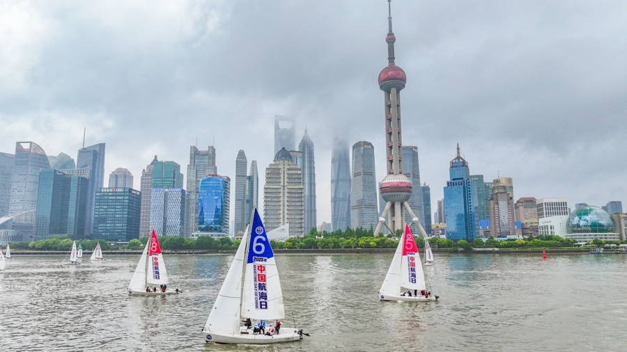 中国航海日帆船展示在黄浦江国客中心段水域举行,市民游客驻足观看,领略拼搏进取的航海精神,感受上海向海而兴的城市底蕴。文汇报记者 张伊辰 摄