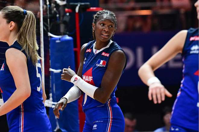 通过得分情况就知道,土耳其队一些主力队员并没有来,她们队内唯一名气较大的巴拉丁,还在第二局开始时扭了脚。于是,本场比赛最亮的明星属于法国队,她们只有一人得分上双,黑人球员接应尼迪耶17扣2发拿到全场最高的19分,其中,扣球成功率高达51.5%。